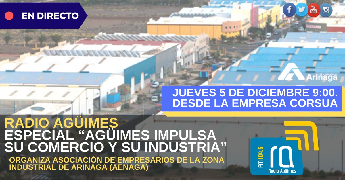 Un nuevo especial de Radio denominado: “Agüimes Impulsa su Comercio y su Industria”, y es una iniciativa con el objeto de Dinamizar y Promocionar el tejido Empresarial, Comercial e Industrial ubicado en el Municipio de Agüimes, organizado por la Asociación de Empresarios de la Zona Industrial de Arinaga (AENAGA), y con la colaboración de la Fundación Municipal de Medios de Comunicación de Agüimes.