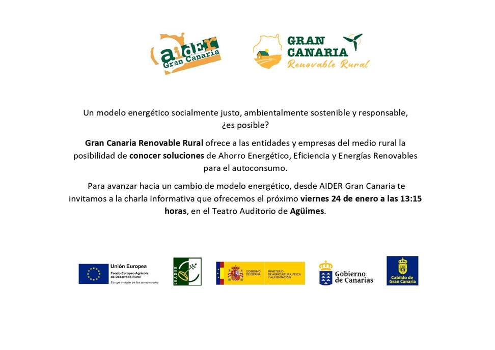INSCRIPCIONES EN EL SIGUIENTE ENLACE: Formulario de inscripción charla informativa 'Gran Canaria Renovable Rural'