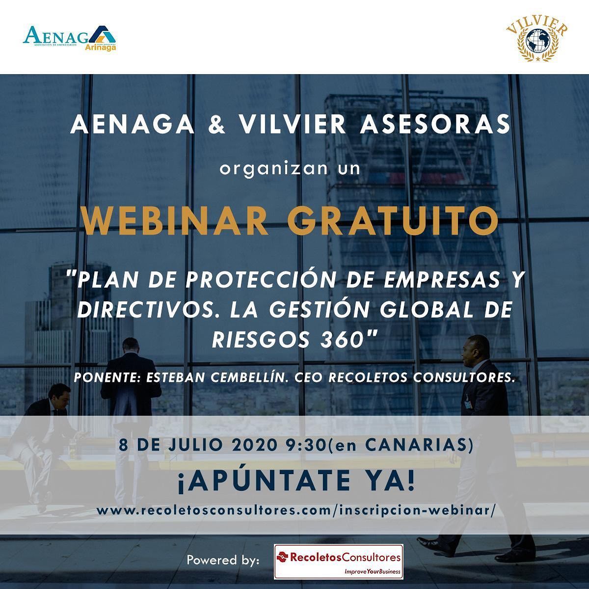 Una vez más AENAGA organiza de la mano de Vilvier Asesoras la #Webinar gratuita: sobre un Plan de Protección de Empresas y Directivos. La gestión Global de Riesgos 360". Infórmate y participa!