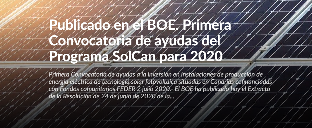 Primera Convocatoria de ayudas a la inversión en instalaciones de producción de energía eléctrica de tecnología solar fotovoltaica situadas en Canarias cofinanciadas con Fondos comunitarios FEDER.