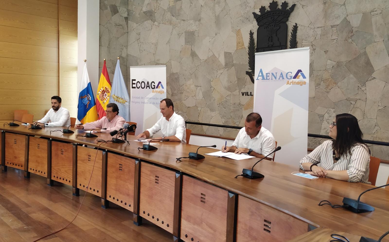 El acuerdo fue firmado hoy miércoles por el alcalde de Agüimes, Óscar Hernández, y los presidentes de la Asociación de Empresarios de la Zona Industrial de Arinaga (Aenaga) y la Entidad de Conservación del Polígono Industrial de Arinaga (Ecoaga), Alexis Bordón y Juan Acosta. En el acto también estuvieron presentes el concejal de Hacienda e Industria, Raúl Martel, y la concejala de Empleo, Desarrollo Local, Comercio y Turismo del Ayuntamiento de Agüimes, Cati Suárez.