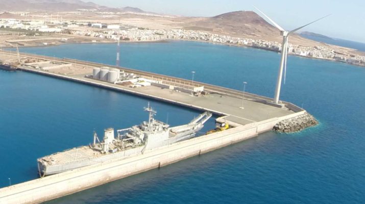 Una nave para producir fertilizante líquido junto al puerto de Arinaga.