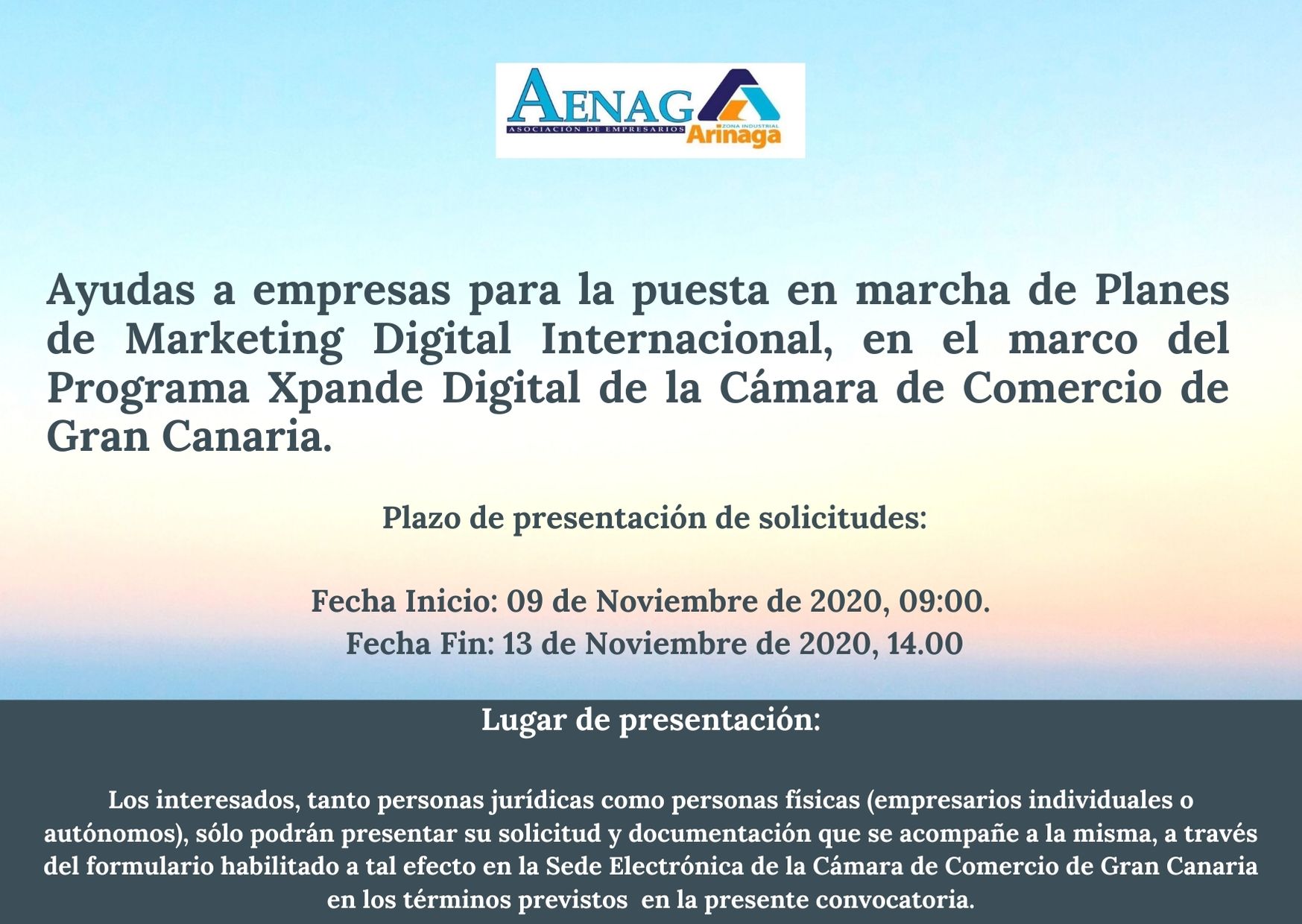 Ayudas a empresas para la puesta en marcha de Planes de Marketing Digital Internacional, en el marco del Programa Xpande Digital de la Cámara de Comercio de Gran Canaria.