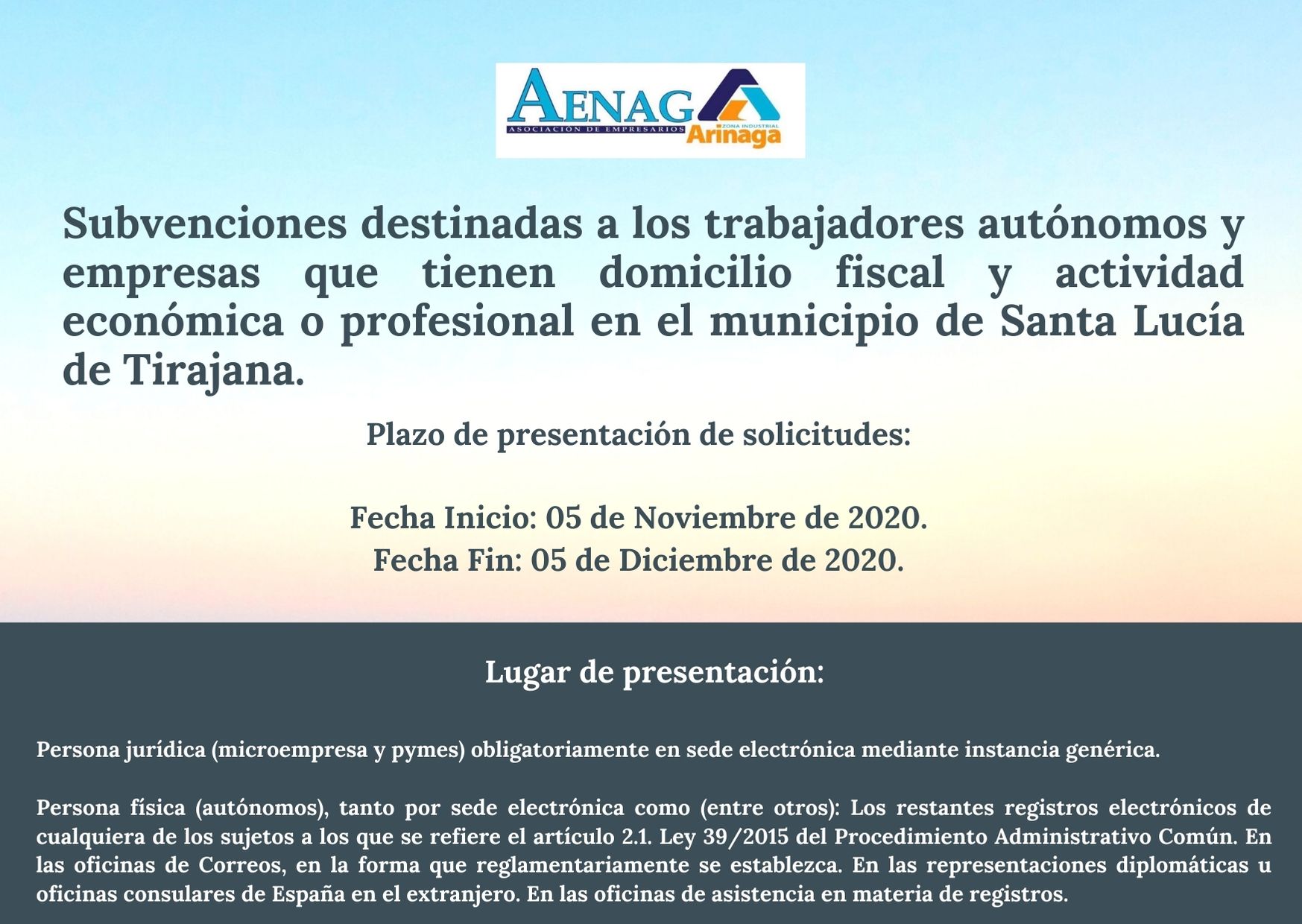 Subvenciones destinadas a los trabajadores autónomos y empresas que tienen domicilio fiscal y actividad económica o profesional en el municipio de Santa Lucía de Tirajana.