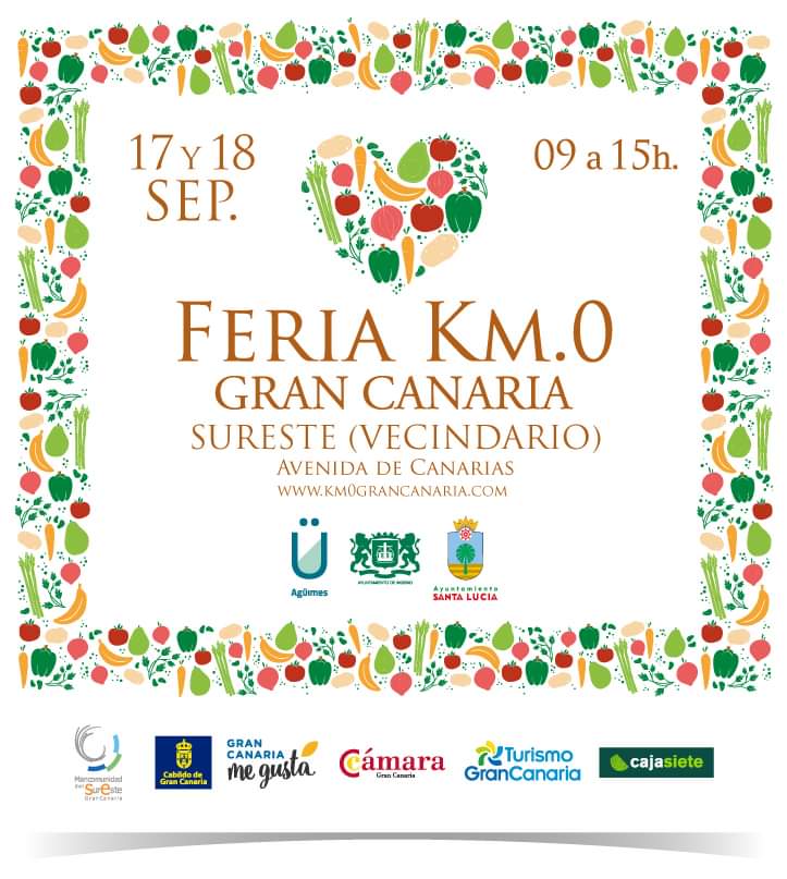 La Feria Km.0 Gran Canaria es posible gracias a: Mancomunidad del Sureste (Ayuntamiento de Agüimes, Villa de Ingenio y Ayuntamiento de Santa Lucía), Gran Canaria Industria, Comercio y Artesanía, Gran Canaria, Cámara de Comercio Gran Canaria y Cajasiete.