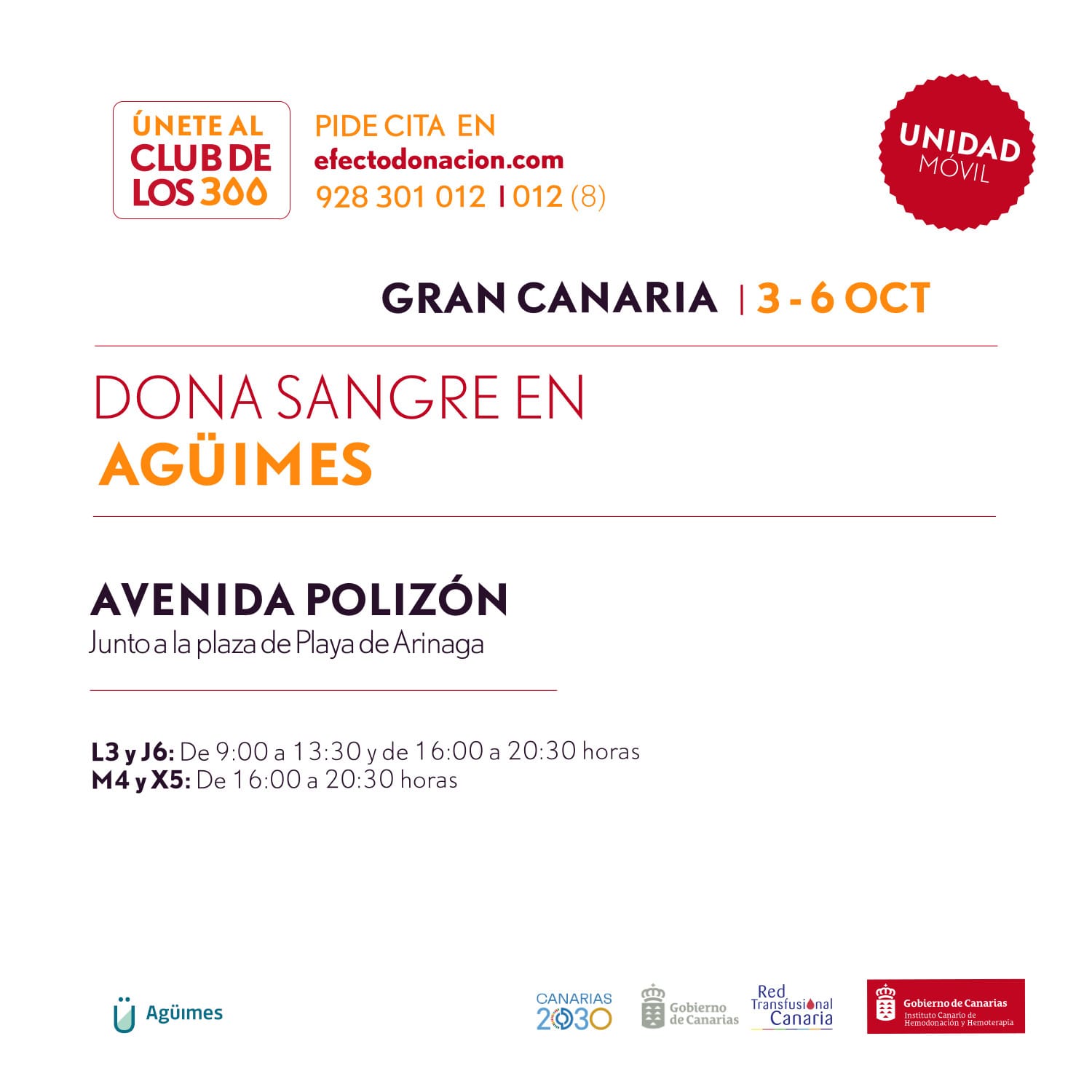 La campaña, que inició el pasado día 16 de septiembre y se prolongará hasta el día 14 de octubre, por diversos puntos del municipio. Desde hoy y hasta el 06 de Octubre se encuentra en Avenida Polizón de Arinaga, donde se podrá donar.
